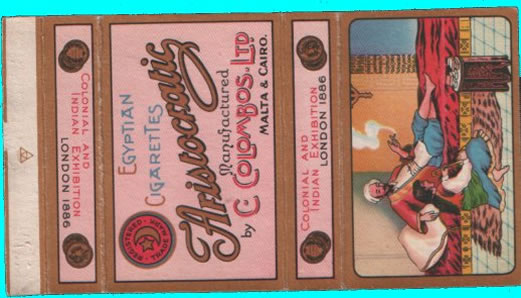 smoking, lady in attendance, side panel states "Colonial & Indian Exhibition 1886" nice art & colours, Mint |