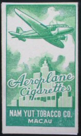| CP047 | MACAU | 10 | 2 different images of early prop plane, front & back, circa 1920-30's pretty cigarette packet hull only m20-30's, pretty colours, flowers etc. Vg | SOLD |